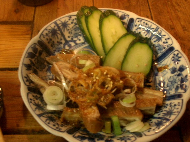 シッカリ火が通ったガツをキュウリと一緒にあっさりポン酢のガツ冷盤。