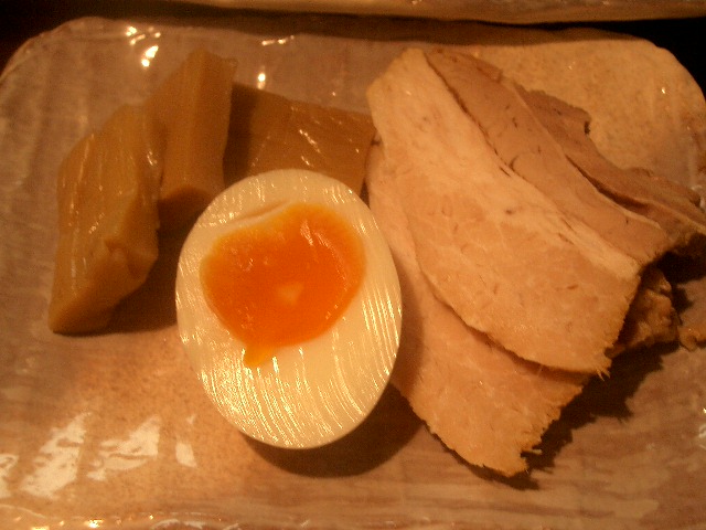 瓢亭玉子(半熟玉子)・メンマ・チャーシューのベーシックなトッピング。