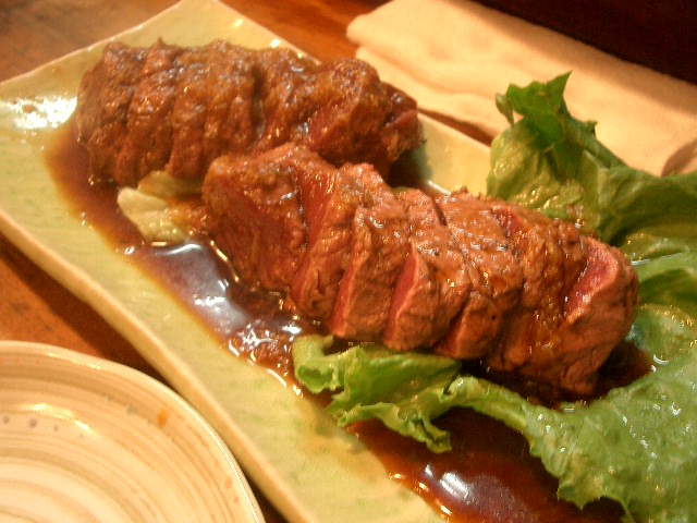 ニンニクたっぷりでほんのり甘い醤油ダレがかかった馬ステーキ