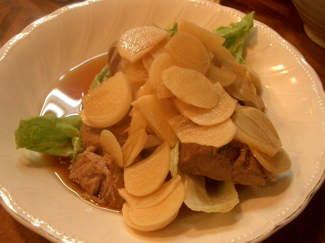 コリコリとした鮑のような食感にソレだけでも肴になりそうなニンニク味噌のコブクロ