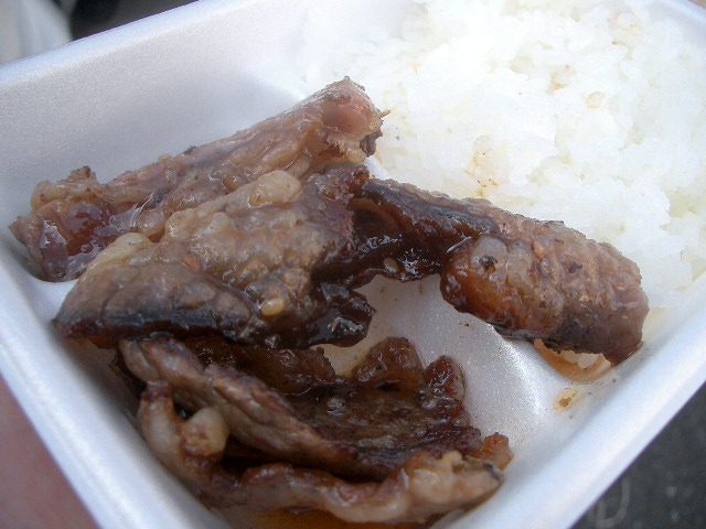 ご飯半膳程度に焼肉が4切れと控えめのボリュームながら値段を考えたら贅沢。