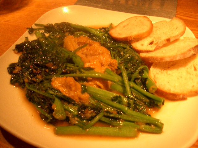 ニンニクで炒められたクレソンは空芯菜炒めのような味に