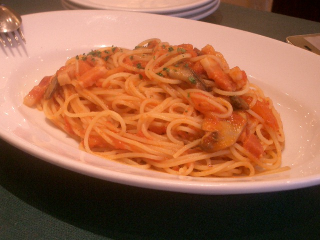 パンチェッタの塩味にトマトソースは凄くマッチしていて